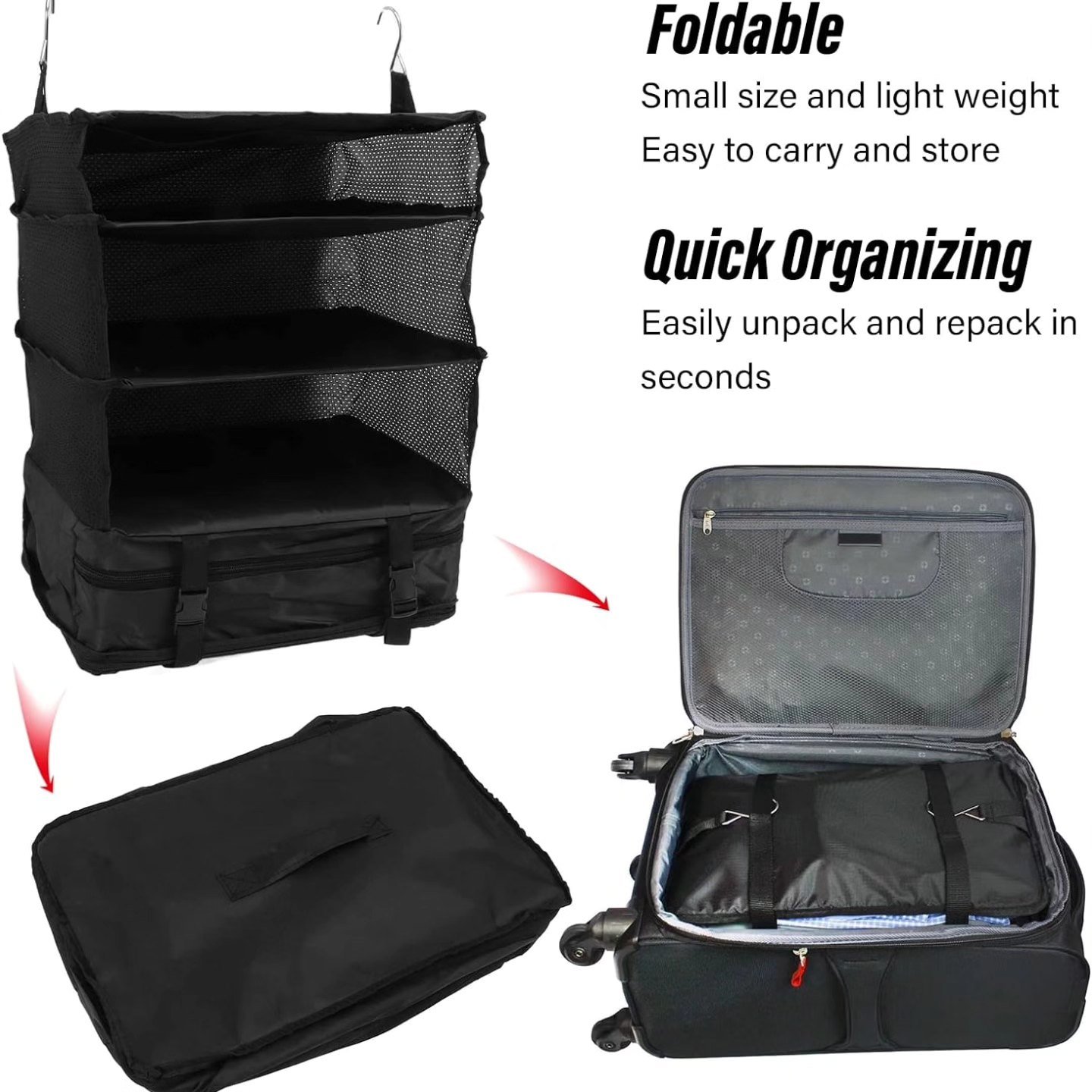 • Conception d’économie d’espace :La conception suspendue de cet organisateur vous permet de maximiser votre espace de bagages en gardant tout bien organisé et facilement accessible.