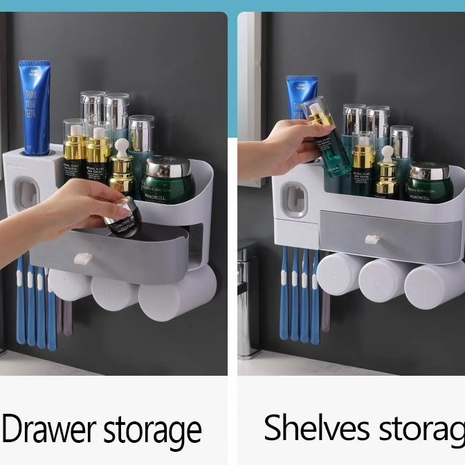 Nos porte-brosse à dents de salle de bain ne sont pas seulement des porte-brosse à dents et des distributeurs de dentifrice, mais aussi des plateaux de rangement.