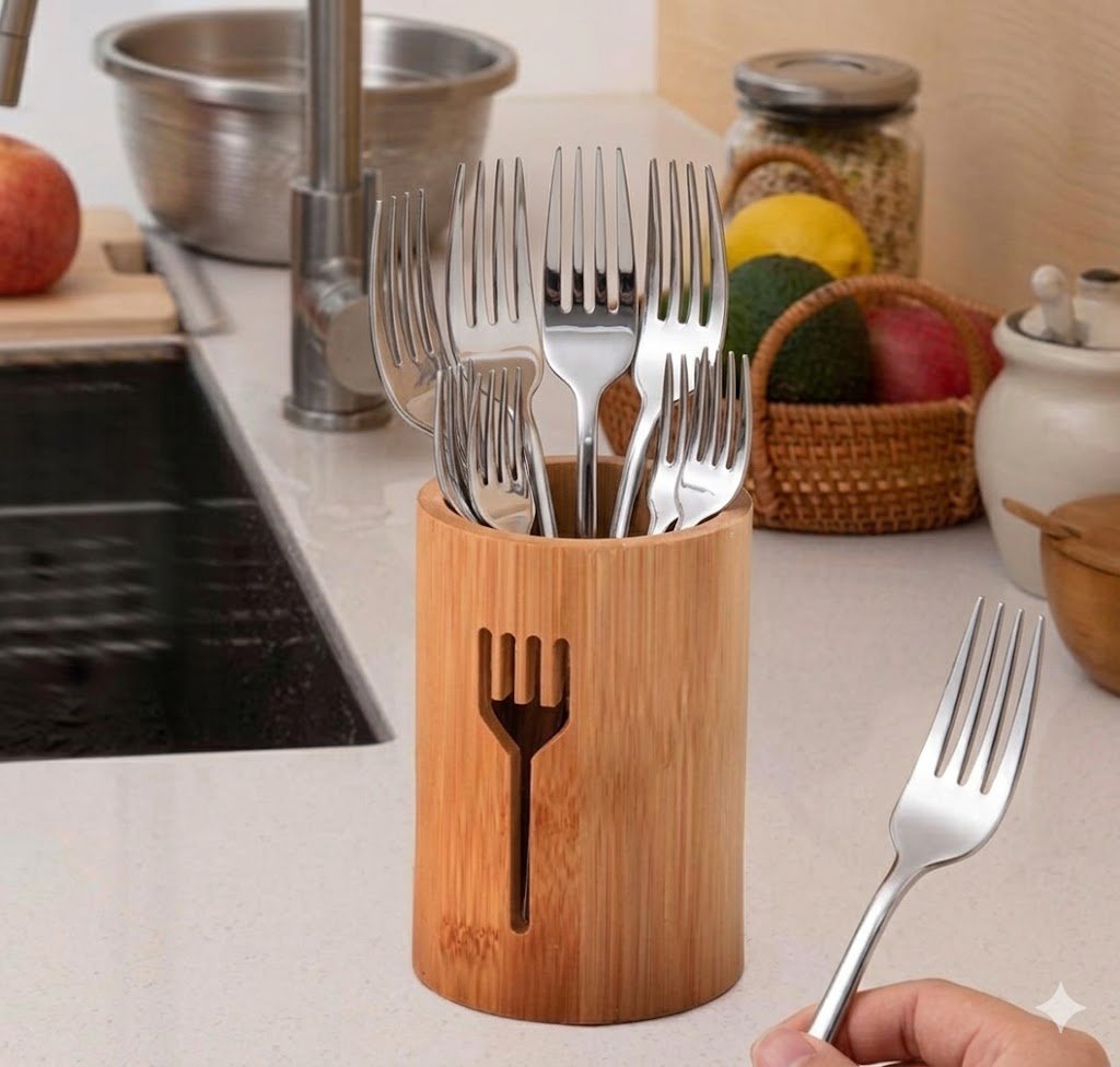 Porte-Fourchettes Cylindrique en Bambou