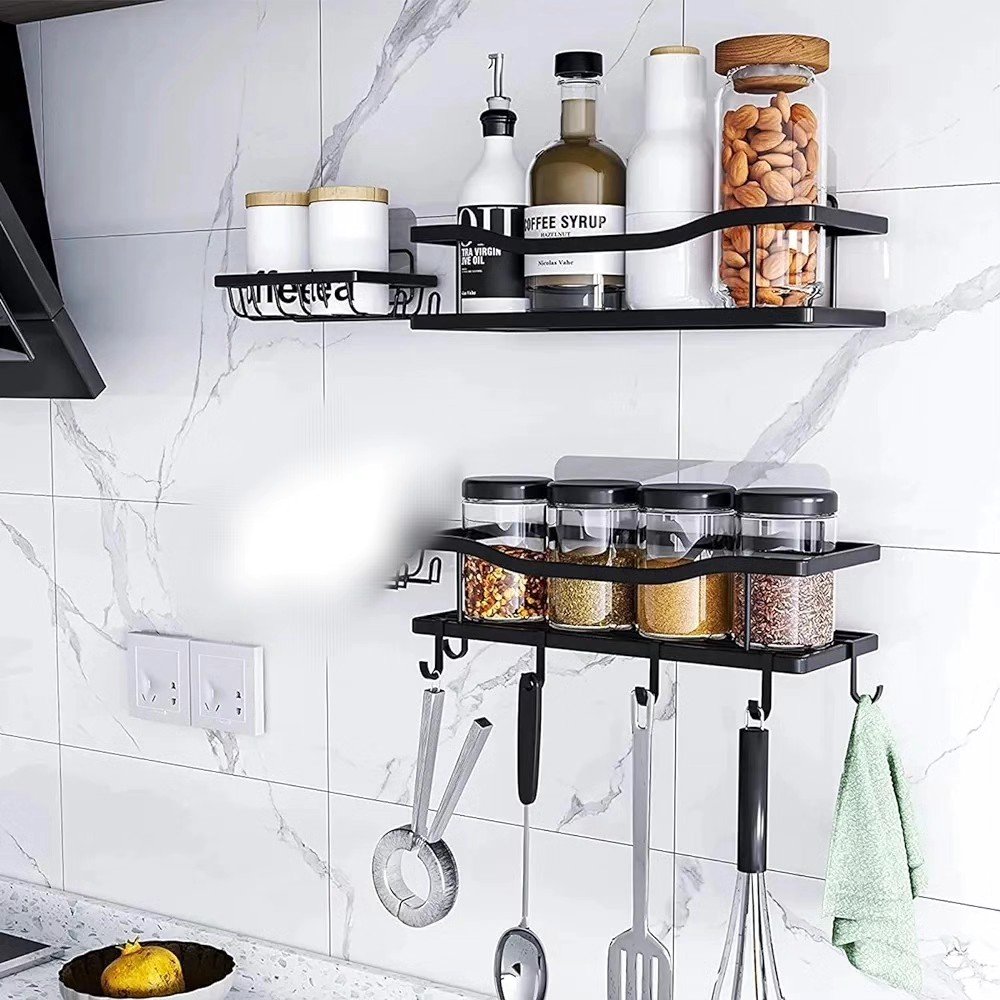 Étagères de cuisine murales : les étagères de cuisine sans perçage libèrent un espace de rangement précieux tout en gardant tous les ustensiles de cuisine, les canettes et les épices organisés sous vos yeux.