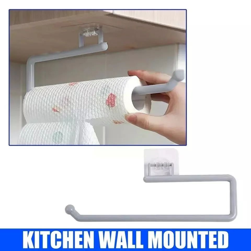Support de papier cuisine suspendu avec crochet auto-adhésive.