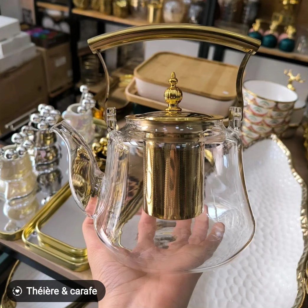 Théière et bouilloire en verre avec poingnée en cuivre 1200ml résistant à la chaleur.